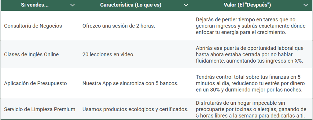 ❌ Mal ejemplo: "Te ofrezco mi nuevo programa de productividad." ✅ Buen ejemplo: "¿Estás listo para duplicar tu tiempo libre sin sacrificar resultados en tu negocio?"